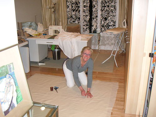 Fiber artist Roxane Lessa concentrates on a new quilted design.