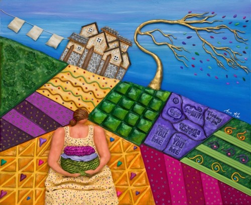 Be it laundry hanging on a clothesline blowing in the wind, puffy quilts, an old barn, a field of flowers, colourful umbrellas, mother and child, a snowy night – all are made of clay. It is a medium that has proven ever forgiving. It allows me to take it wherever my imagination leads me.