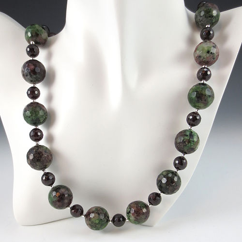 I found an amazing strand of ruby in zoisite and some faceted garnet at a gem show last fall. There wasn’t enough ruby in zoisite for more than one piece, but I still wanted to use it. So, this orphan was created: