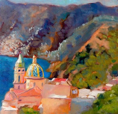 “Praiano Vista” oil on board, 12″ x 12″ by Josh Lance
