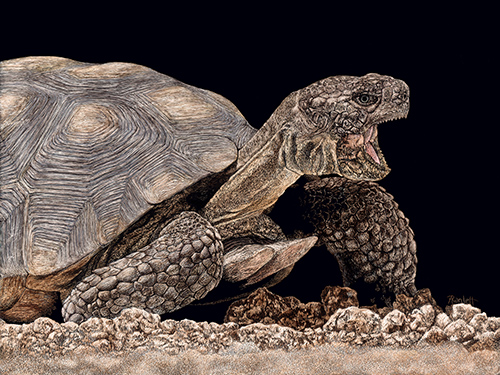“Tucson Yawn” scratchboard, 9″ x 12″