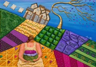 Be it laundry hanging on a clothesline blowing in the wind, puffy quilts, an old barn, a field of flowers, colourful umbrellas, mother and child, a snowy night – all are made of clay. It is a medium that has proven ever forgiving. It allows me to take it wherever my imagination leads me.