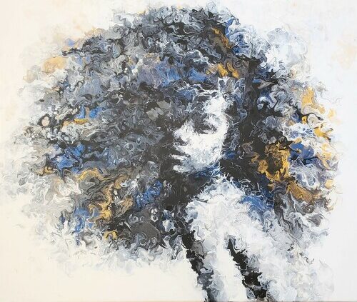 Artist Liz Ahmet finds beauty in chaos through her striking portraits created with poured paint and scribble techniques. See more by visiting her website.